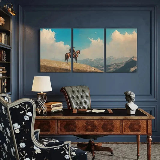 3pcs Western Cowboy On Horseback Mountain LandscapeMetal Print Ready to Hang Art