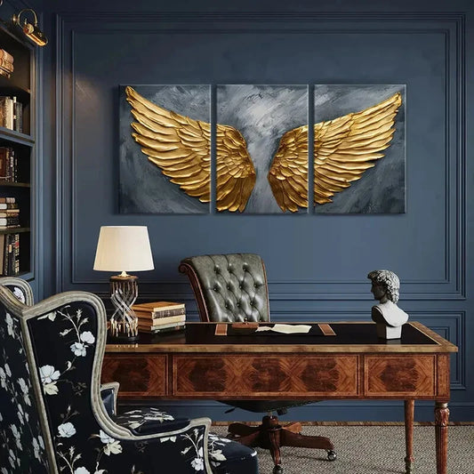 3pcs Golden Wings Art Luxury Poster Metal Print Ready to Hang Art