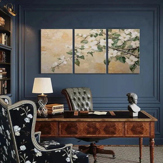 3pcs Artistic Floral Branches White Blossoms Metal Print Ready to Hang Art