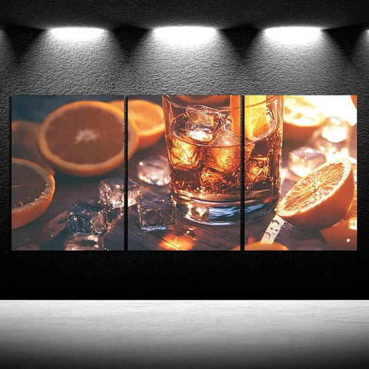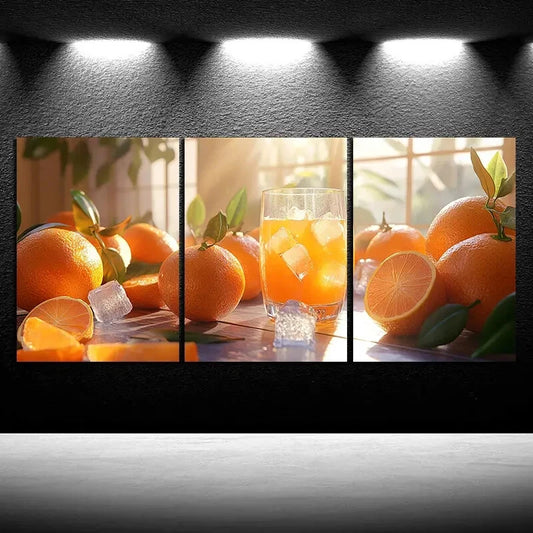 3pcs Sunshine Orange Juice And Ice Metal Print Ready to Hang Art
