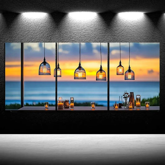 3pcs Chandelier Scenery Nature Lanterns Metal Print Ready to Hang Art