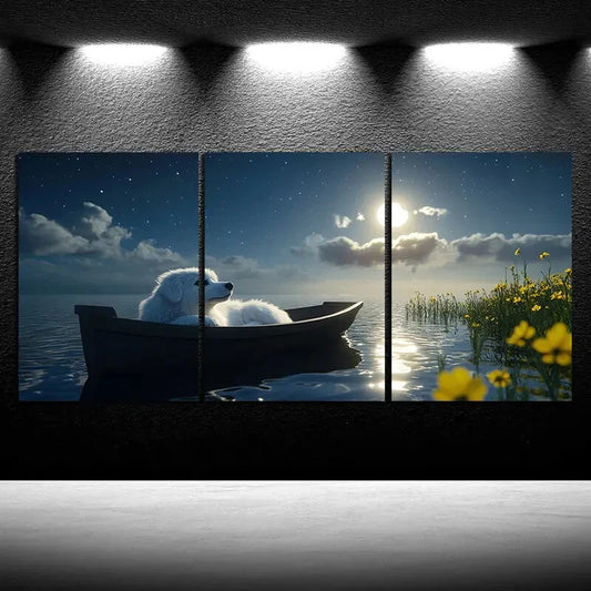 3pcs Rustic Rowboat Serene Lake Soft Light Metal Print Ready to Hang Art