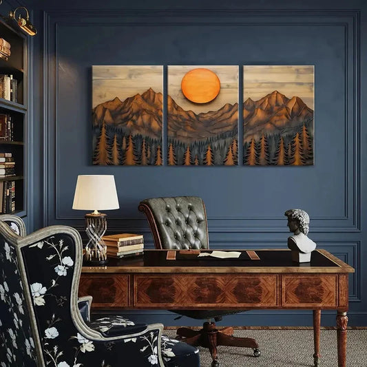 3pcs Rustic Mountain Landscape Snow-Capped Peaks Metal Print Ready to Hang Art