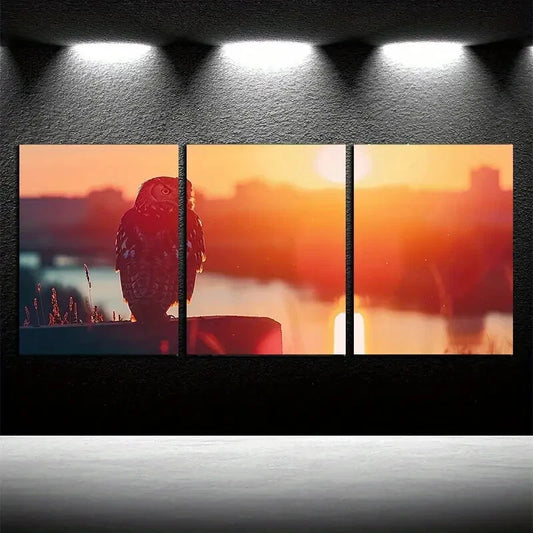 3pcs Vibrant Swamp Owl Illustration Metal Print Ready to Hang Art