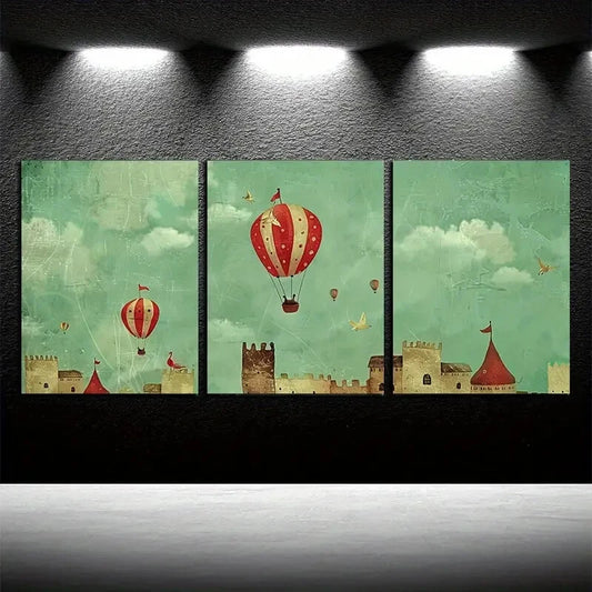 3pcs Vibrant Whimsical Hot Air Balloon Metal Print Ready to Hang Art
