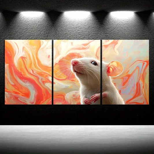 3pcs Flexible Mouse Animal Themed Metal Print Ready to Hang Art
