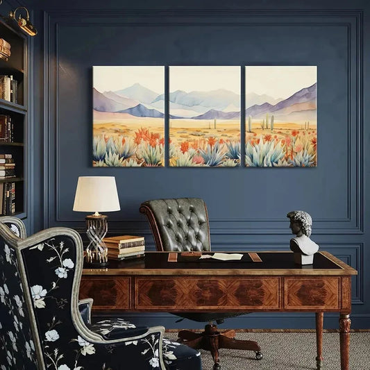 3pcs Desert Landscape Mountain View Floral Design Metal Print Ready to Hang Art