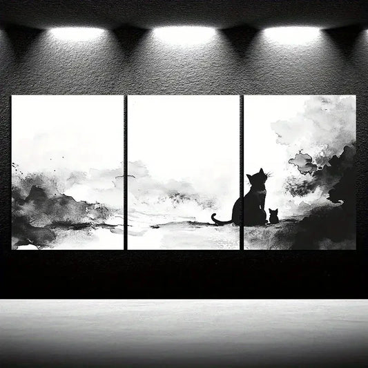 3pcs Ink Wash Animals Black & White Metal Print Ready to Hang Art