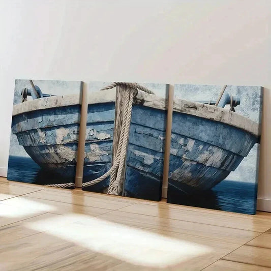 3pcs Vintage Weathered Wooden Boat Wall Art Set Canvas Framed 40x60cm - High Quality Print 100% Australian Made Wall Canvas Ready to Hang