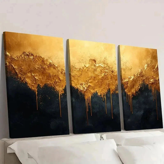 3pcs Vibrant Golden Black Design Wall Art Set Canvas Framed 40x60cm - High Quality Print 100% Australian Made Wall Canvas Ready to Hang