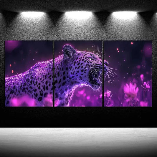 3pcs Purple Leopard Vivid Animal Metal Print Ready to Hang Art