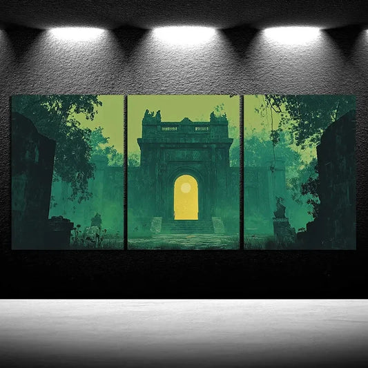 3pcs Green Gate Tower Artwork Metal Print Ready to Hang Art