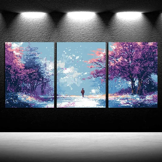 3pcs Vibrant Person in the Forest Pixel Scene Metal Print Ready to Hang Art