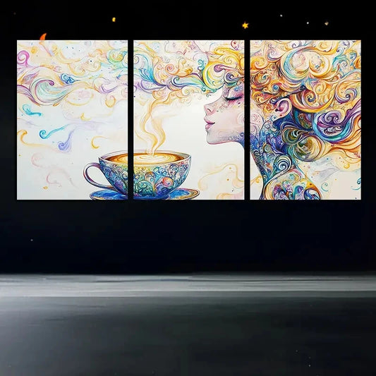 3pcs Vibrant Abstract Coffee Cup and Swirls Metal Print Ready to Hang Art