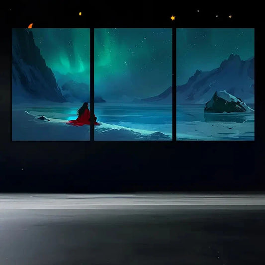 3pcs Vibrant Aurora Borealis Illustration Metal Print Ready to Hang Art