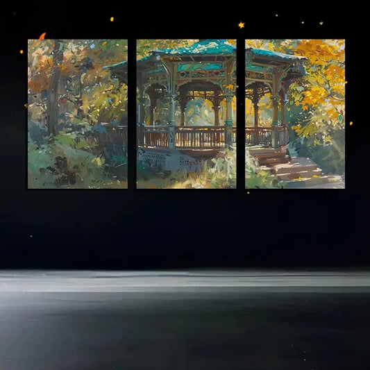 3pcs Vibrant Cottage in Forest Illustration Metal Print Ready to Hang Art