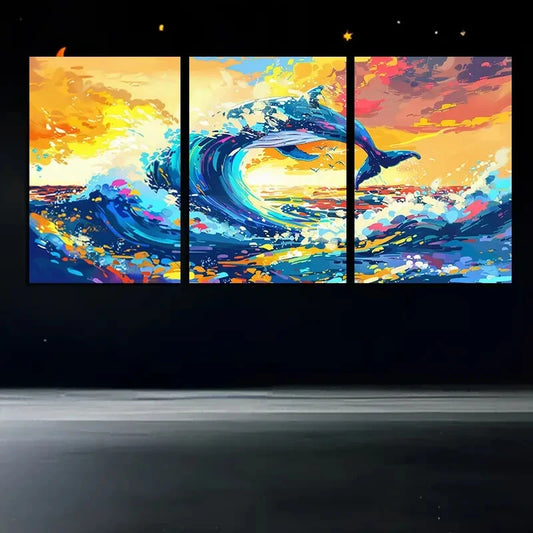 3pcs Vibrant Whimsical Whale Illustration Metal Print Ready to Hang Art