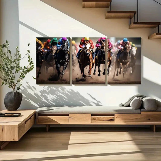 3pcs Horse Racing Sport Art Competitive Metal Print Ready to Hang Art