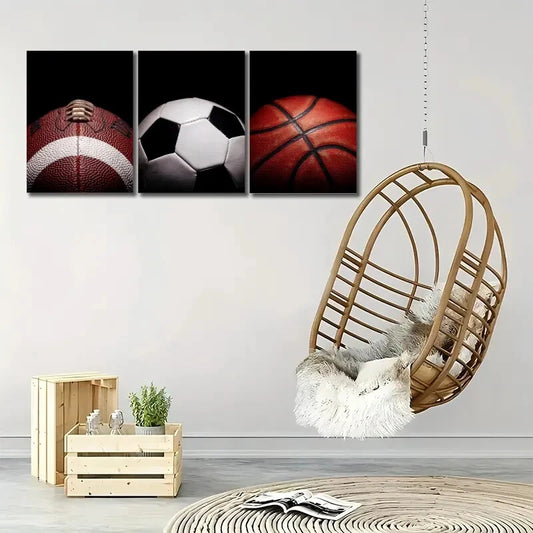 3pcs Sports Football and Basketball Metal Print Ready to Hang Art