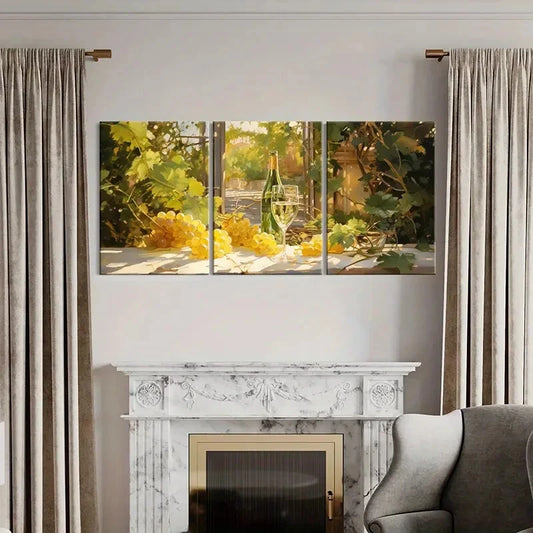 3pcs Vintage Wine & Grape Vineyard Sunlit Scene Metal Print Ready to Hang Art
