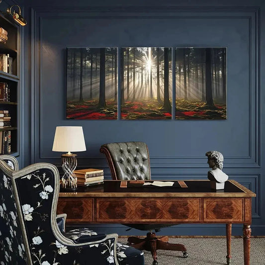 3pcs Sunlight Forest Nature Landscape Art Metal Print Ready to Hang Art