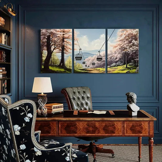 3pcs Sakura Cable Car Mountain View Forest Metal Print Ready to Hang Art