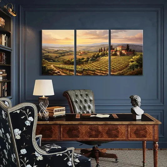 3pcs Sunset Vineyard Tuscan Hills Rural Landscape Metal Print Ready to Hang Art