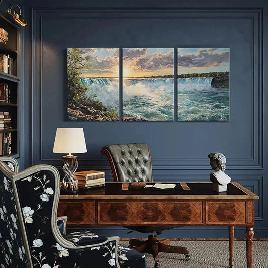 3pcs Sunset Waterfall Clouds Natural Landscape Metal Print Ready to Hang Art