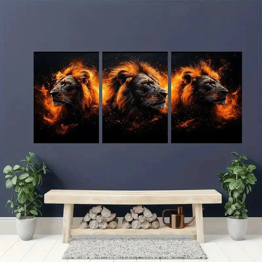 3pcs Abstract Animal Golden Lion Metal Print Ready to Hang Art