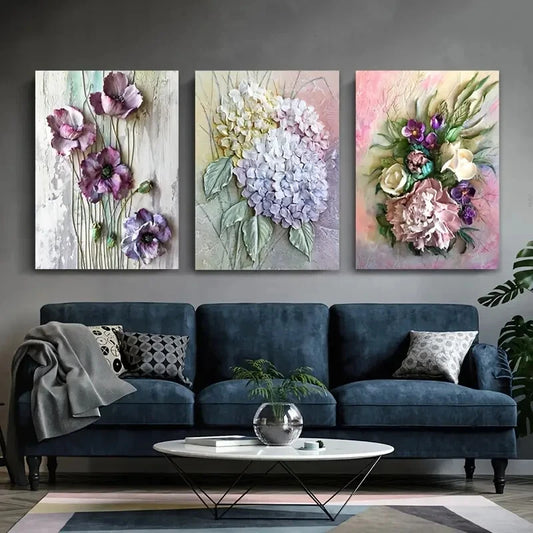 3pcs Abstract Floral Art Soft Pastel Colors Metal Print Ready to Hang Art