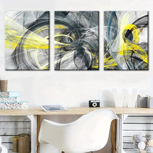 3pcs Abstract Colorful Line Art with Interwoven Metal Print Ready to Hang Art