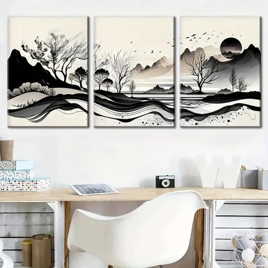 3pcs Nature Mountain Scenery with Black & White Metal Print Ready to Hang Art