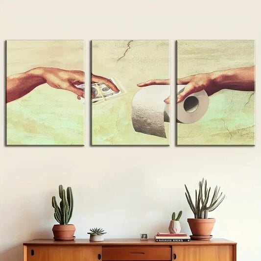 3pcs Humorous Modern Toilet Paper Metal Print Ready to Hang Art