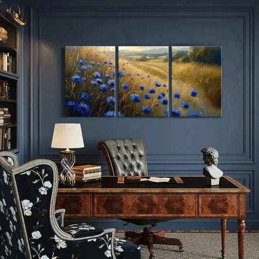 3pcs Blue Cornflower & Golden Wheat Field Metal Print Ready to Hang Art