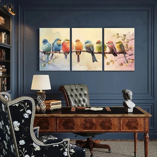 3pcs Vibrant Bird Colorful Abstract Avian Metal Print Ready to Hang Art