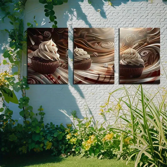 3pcs Vibrant Chocolate Cake Illustration Metal Print Ready to Hang Art