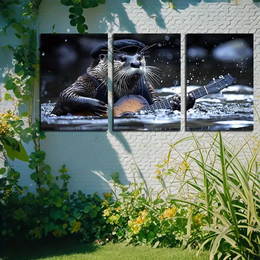 3pcs Otter Playing Guitar Musical Animal Theme Metal Print Ready to Hang Art