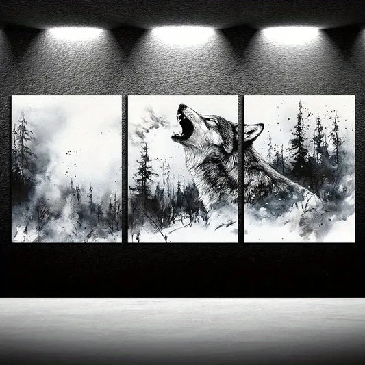 3pcs The Howling Wolves in the Forest Metal Print Ready to Hang Art