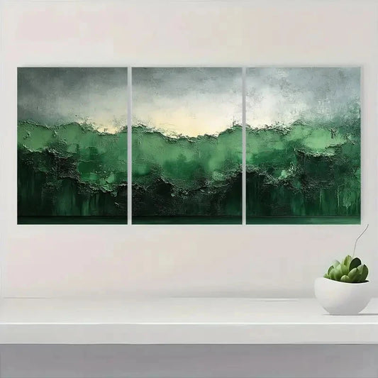 3pcs Green Abstract Minimalist Wabi Sabi Textured Metal Print Ready to Hang Art