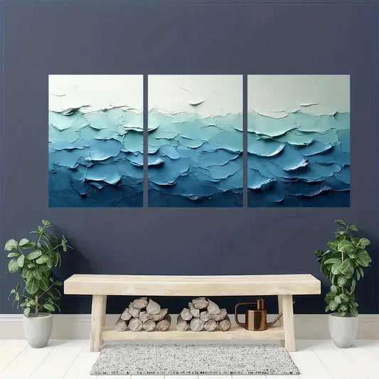 3pcsLight Green and Blue Abstract Texture Painting Metal Print Ready to Hang Art