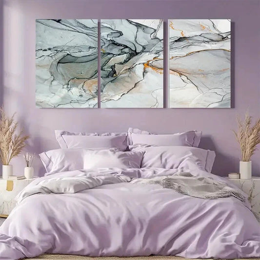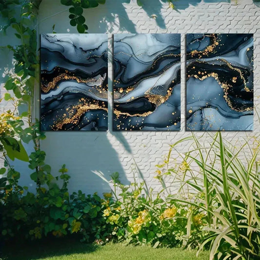 3pcs Abstract Marble Design Stone Effect Metal Print Ready to Hang Art