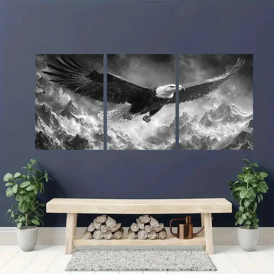 3pcs Dramatic Black and White Bald Eagle Metal Print Ready to Hang Art