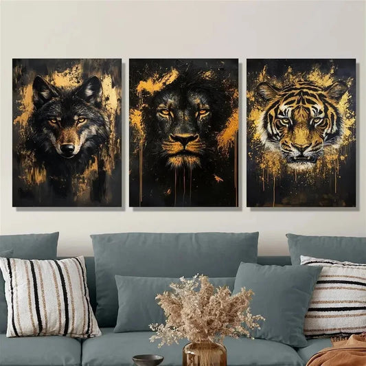 3pcs Black and Golden Jungle Animals Metal Print Ready to Hang Art