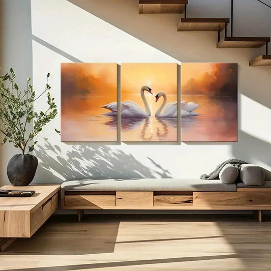 3pcs Swan Couple in Lake Sunset Serene Metal Print Ready to Hang Art
