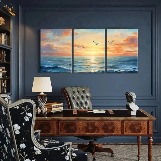 3pcs Sunset Ocean Seagulls Sky Clouds Metal Print Ready to Hang Art