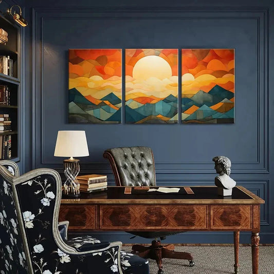3pcs Sunset Mountains Clouds Abstract Landscape Metal Print Ready to Hang Art