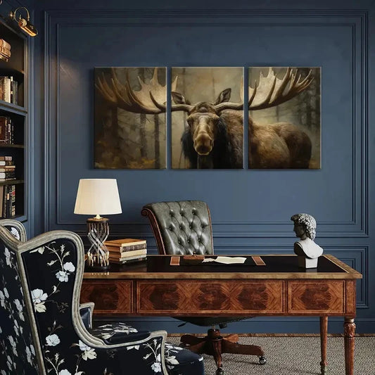3pcs Moose Forest Antlers Wildlife Art Metal Print Ready to Hang Art