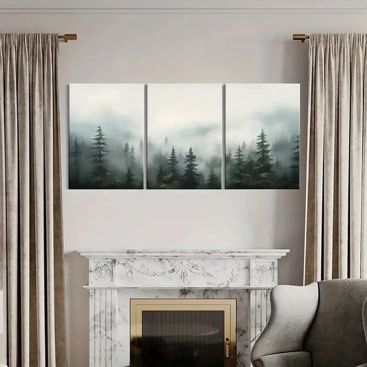 3pcs Misty Forest Serene Landscape Tranquil Metal Print Ready to Hang Art