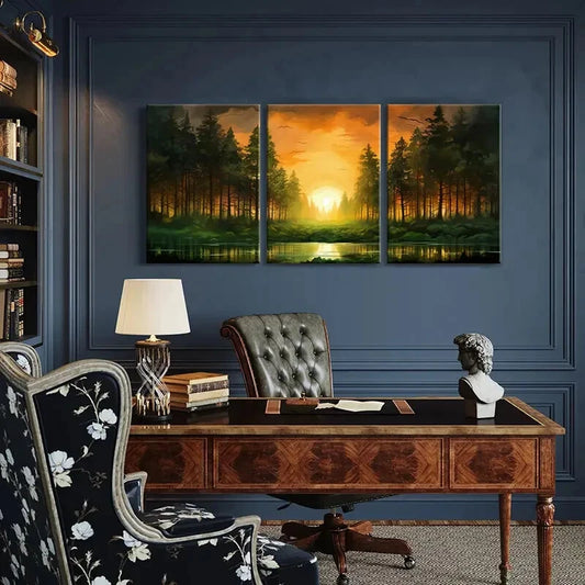 3pcs Sunset Landscape Forest Reflection Metal Print Ready to Hang Art