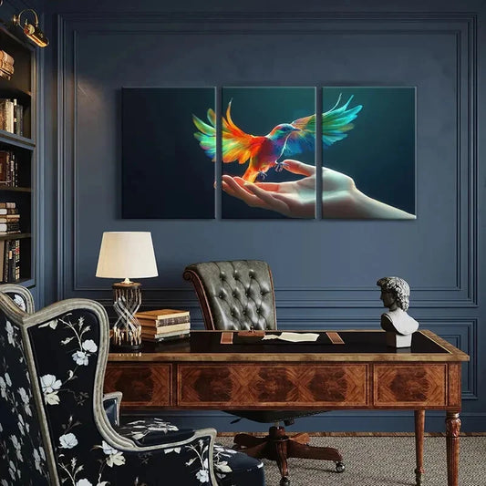 3pcs Colorful Hummingbird Human Hand Animal Art Metal Print Ready to Hang Art